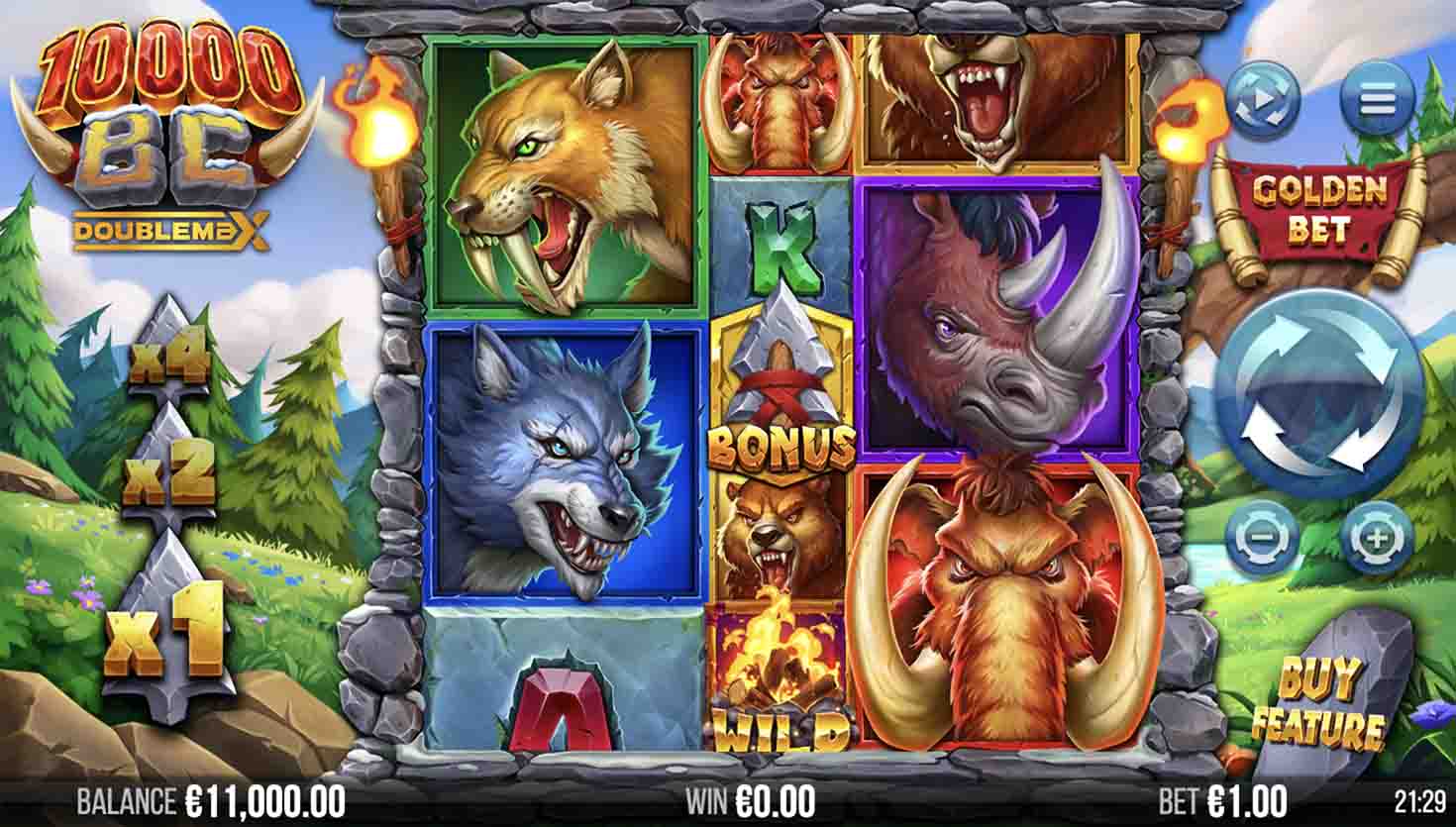 10000 BC DoubleMax is a 5×5 animated slot released in August 2023 by 4ThePlayer. This mid-high volatility title features 50 paylines indicating the possible combinations.