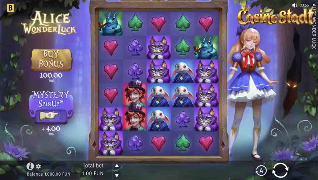 Positioned beside the reels, Alice reacts to in-game events, adding a dynamic and interactive element that keeps players engaged. The game’s design ensures that both newcomers and seasoned slot enthusiasts will find delight in the depth of its features and the charm of its setting.