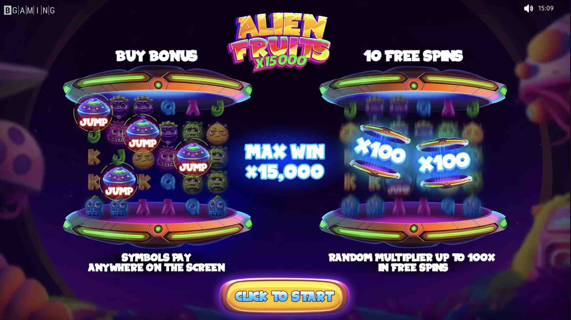 There is a lot of dynamic action on the reels in Alien Fruits that make the journey to the 15,000x max cash jackpot more interesting. Try this BGAMING slot to enjoy the unique spin on the outer space theme!