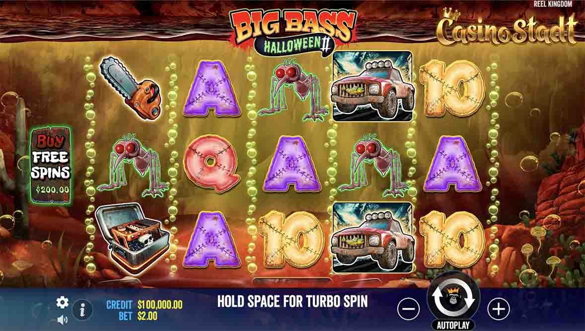 Big Bass Halloween 2 sticks to the trusted 5×3 reel setup from the original, but with a creepy twist. Set in eerie aquatic surroundings, players will encounter haunting symbols like infected bugs, dead bass, and chainsaws, all presided over by a possessed fisherman wielding a chainsaw. With a high RTP of 96.71%, this game caters to both thrill-seekers and casual players with a wide betting range of $0.10 to $250 per spin.