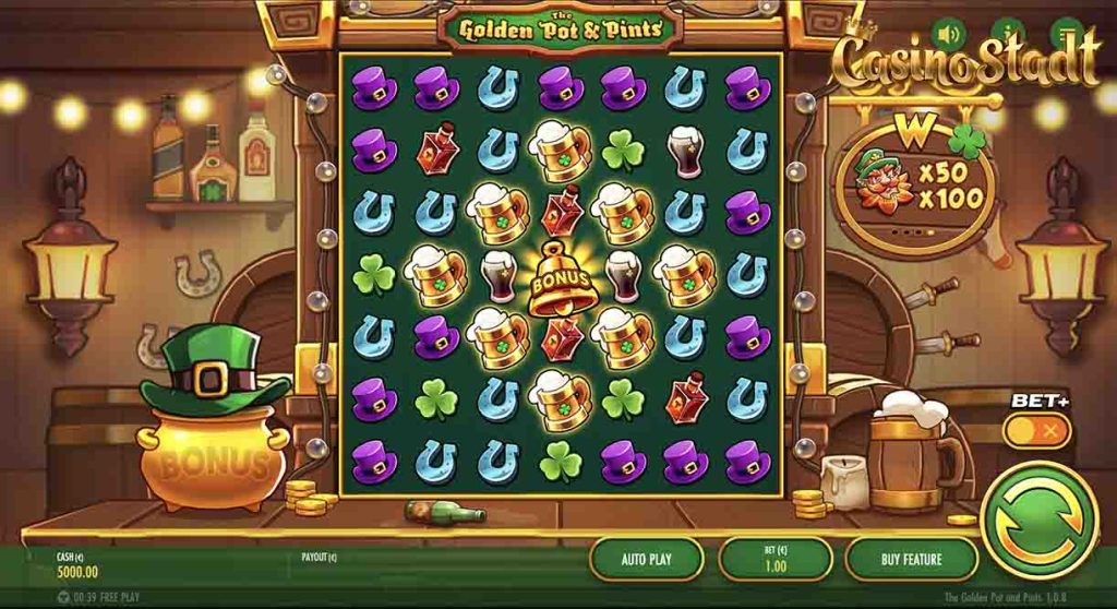 “The Golden Pot & Pints” offers players a dynamic 7×7 cluster pays grid, where symbols cascade down to form winning combinations. The game’s potential for a maximum win of up to 10,000 times the player’s stake adds to the excitement.