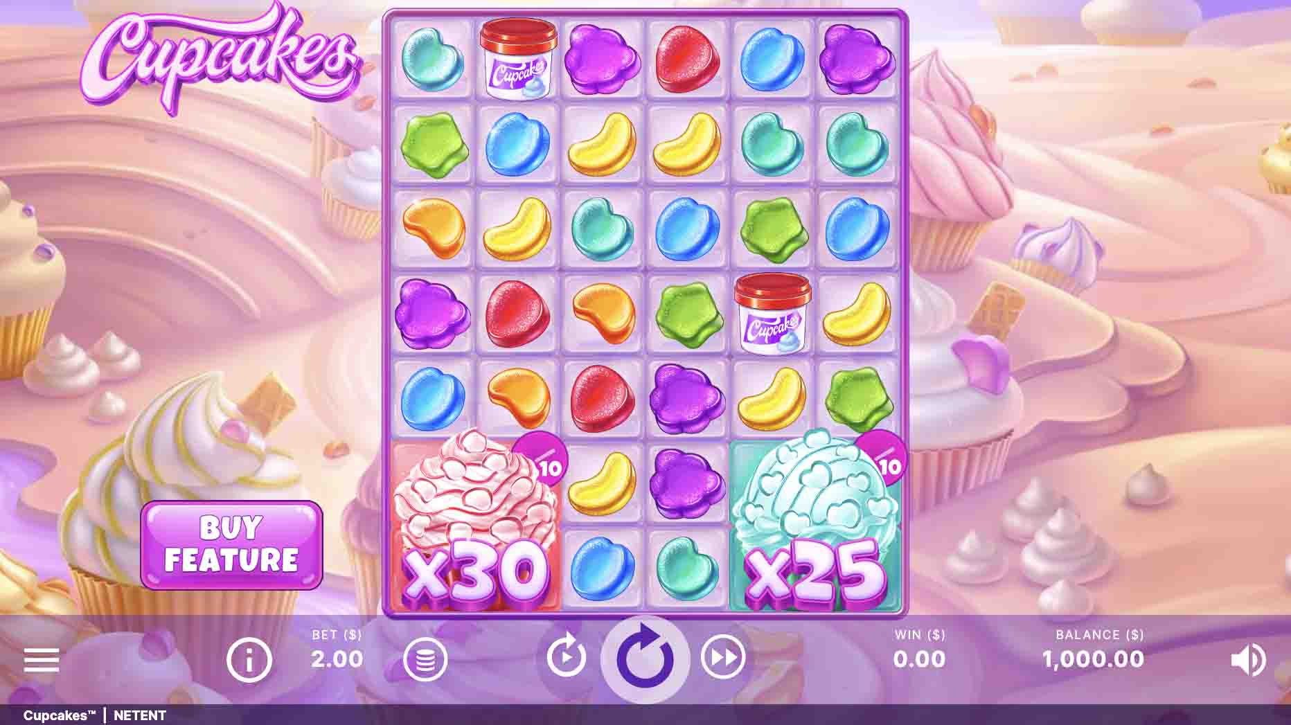 Cupcakes is played on a 7×6 layout and allows you to bet between $0.10 and $200 per spin. It is a high-variance slot with a return to player (RTP) of 96.05%.