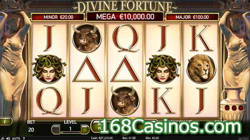 The 5 reel and 20 pay line Greek mythology themed Divine Fortune Progressive Jackpot online slot game comes with a number of great features that include three Progressive Jackpots that give players an opportunity to win big.