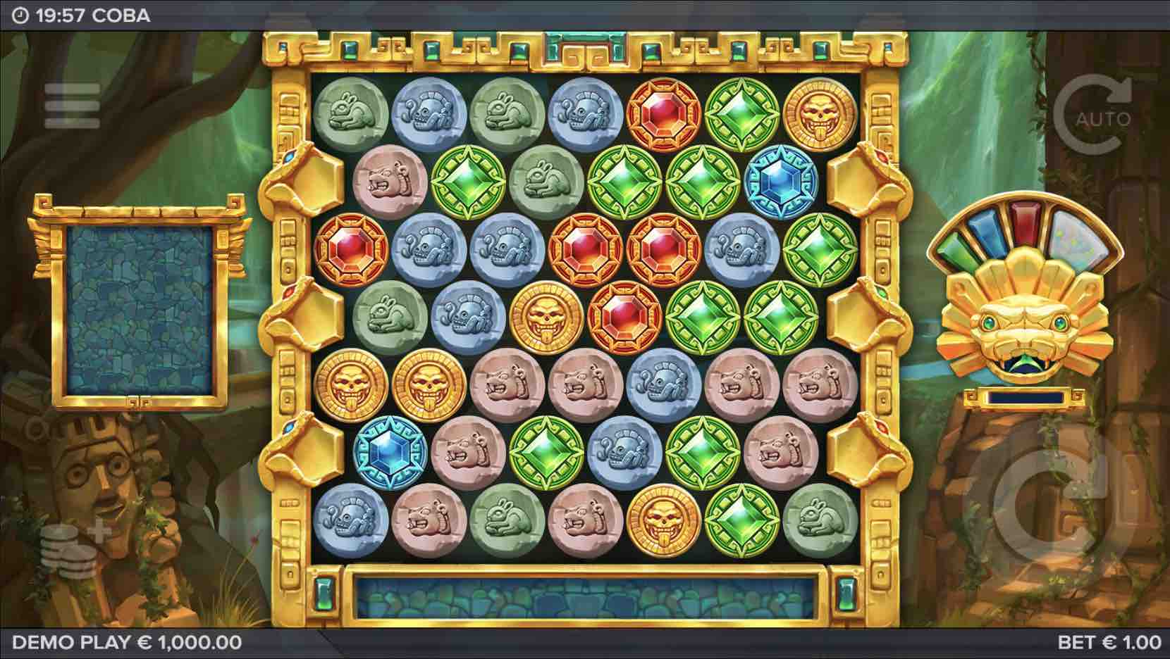 The paytable hosts several runic symbols besides a 2x multiplier Wild. Full of lucrative features, Coba keeps the players invested in the gameplay. The Avalanche feature causes new icons to replace the old ones. Players have to fill the golden snake meter to unleash snakes that create more wins. The Wild is activated if 2 snakes collide and doubles in value if a snake crosses the icon. If the snakes do not get any icon to eat, they die and are removed from the grid. The X-iter feature offers a chance to trigger more features after paying up.