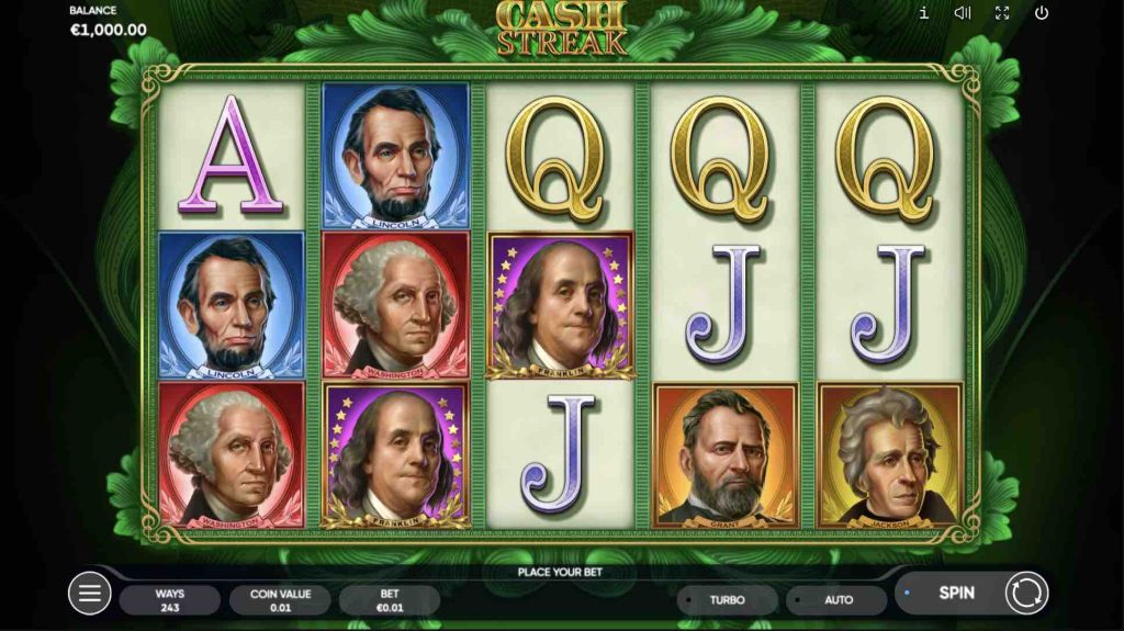 Cash Streak is a 5×3 slot with impressive graphics and 243 winning ways. This history-themed offering was released in April 2023 by Endorphina. The betting limit in Cash Streak stretches between $0.10 and $100. The $50,000 max cash jackpot and the 96% RTP are solid numbers from the provider that will impress players right away.