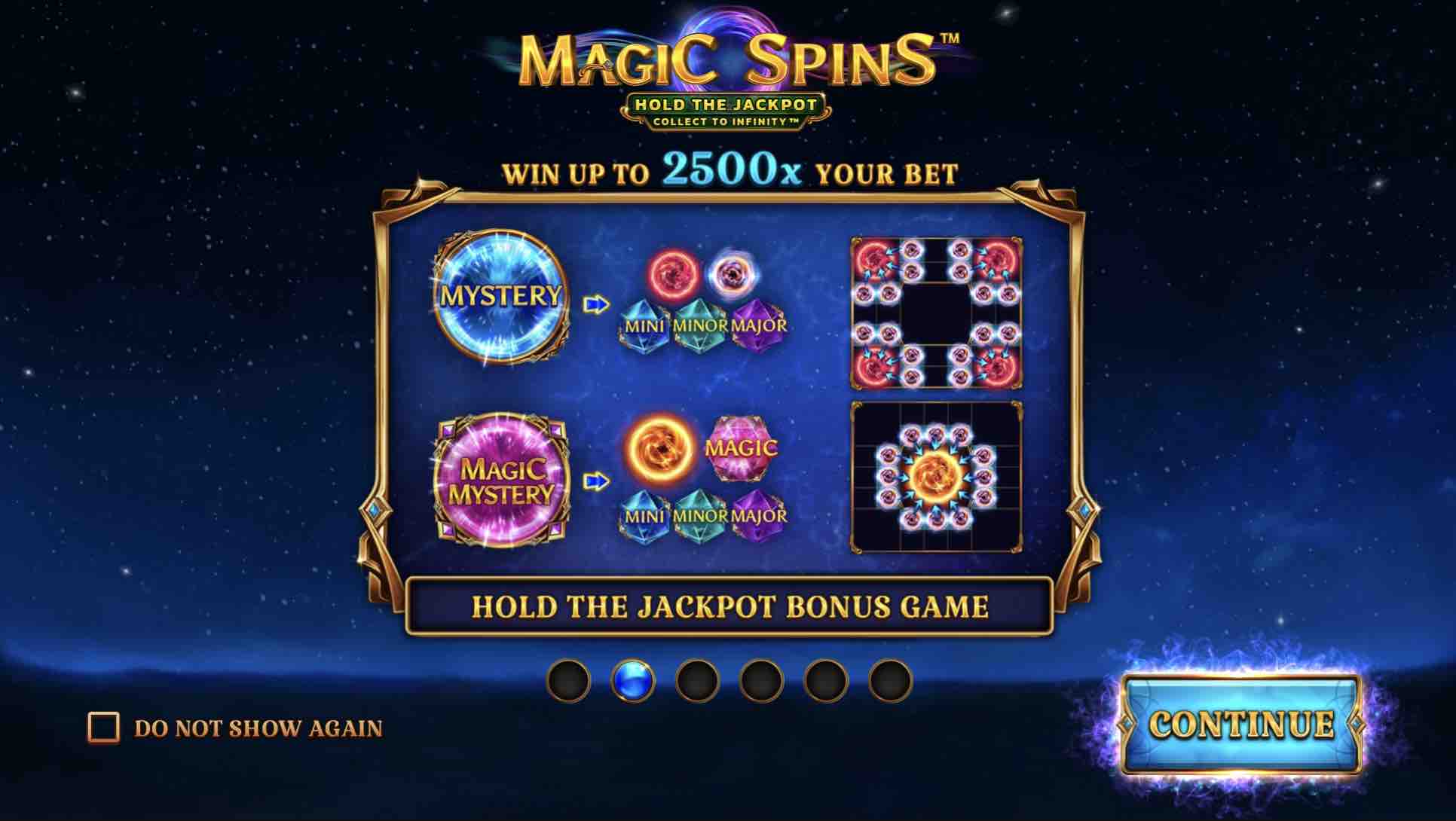 Magic Spins slot is a 29- reel slot with the chance to win up to 2,500 x your stake and a 96.17% RTP.