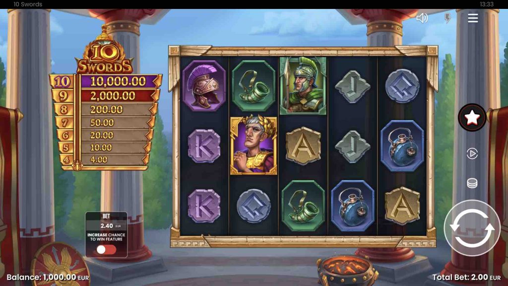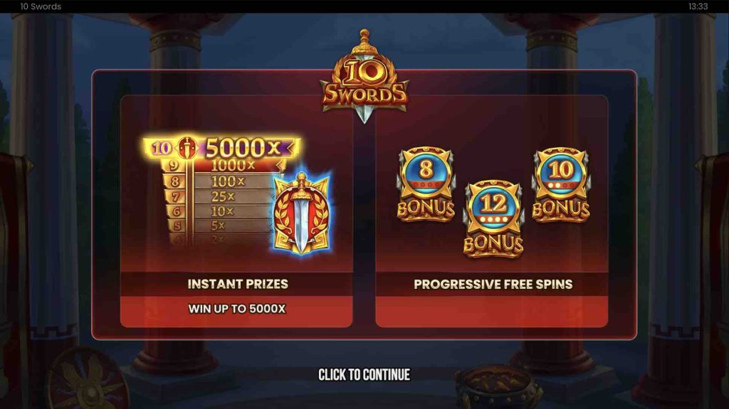 The Free Spins feature can also be accessed via the game’s Buy option on paid basis. As for the sword Wilds, these symbols can grant you an instant prize of 5,000x, lest you land 10 of them on the grid.