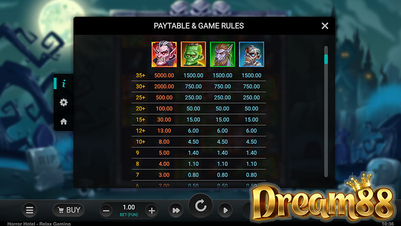Horror Hotel Slot is a 6×6 video slot with a cluster pays mechanic. Relax Gaming released this offering in January 2023.