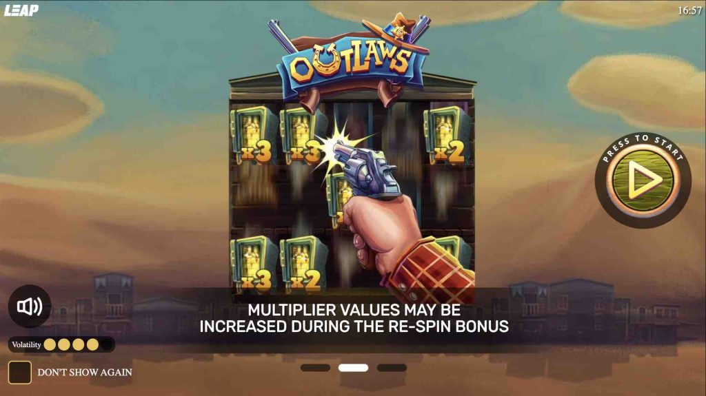 Leap Gaming’s new Wild West-themed slot aptly titled Outlaws, comes with exciting features like Shoot ‘N’ Win bonus, Free Spins, and others, culminating in a $10,000. Brace yourselves for some gun-toting action in this high-octane title to win big.