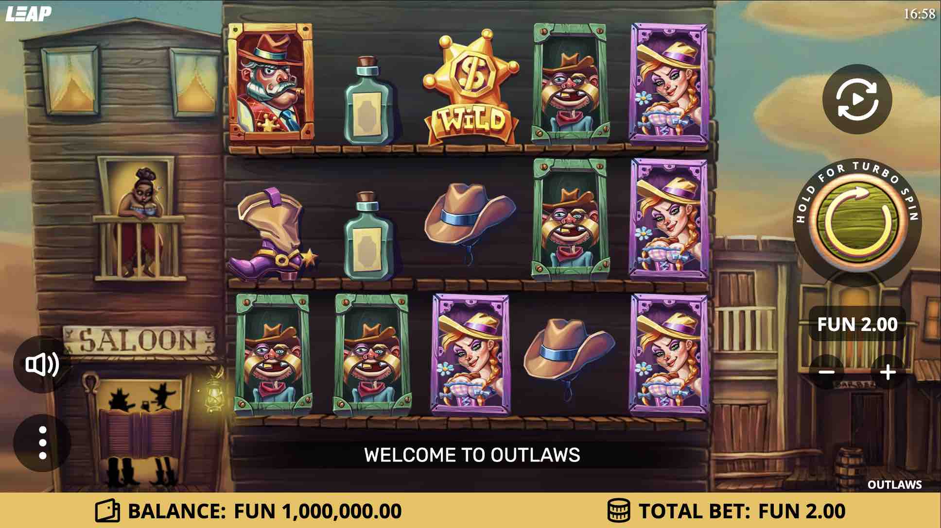 Wild West fans are in for a joyride in this exciting slot by Leaping Games. The 96.05% RTP and the accommodative betting range are some solid stats that will appeal to lots of players. Give Outlaws a few spins to see if you are lucky enough to lay a claim on the $10,000 max cash jackpot.