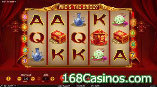 NetEnt’s ‘Who’s the Bride’ is based on marriage and has an elegant, red backdrop with cartoon style graphic symbols on the reels that include standard A, K, Q, J and 10 royals as well as vases, shoes, pendants, a cloth, fans, ornate jewelry boxes, tea pots and red and gold lanterns. The latter symbol rewards players with 111.11x a stake for landing 5 across a pay line.