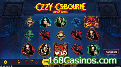 The new Ozzy Osbourne Video Slots features 20 pay lines and is set in a dark temple with symbols on the reels that include crosses, skulls, roses, crows and the Oz Man himself.