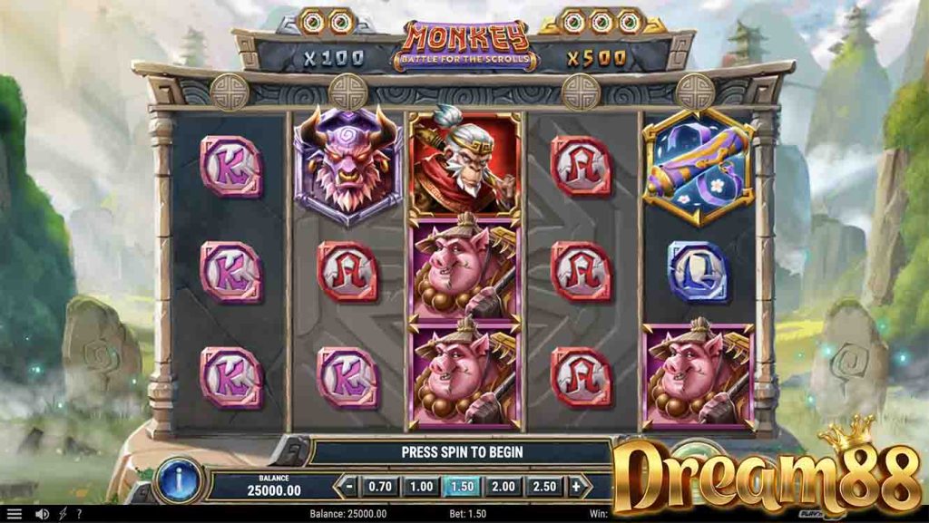 Monkey Battle For The Scrolls is a new slot released by Play’n GO meant for fans of the Chinese myth of Sun Wukong. Unleash the power of legendary characters to trigger special features and hit the $150 jackpot!