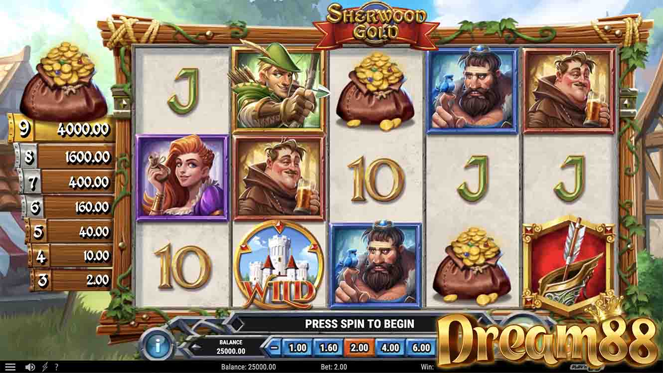 Sherwood Gold is a medieval-themed slot based on the tale of the charitable Robin Hood. The game allows players to create 20 paylines on the 5×3 grid. Players from all risk levels can place their desired bets in the range of $0.2 to $80. The $2,000 max jackpot offered in this high-variance slot is paired with an RTP of 96.20%.