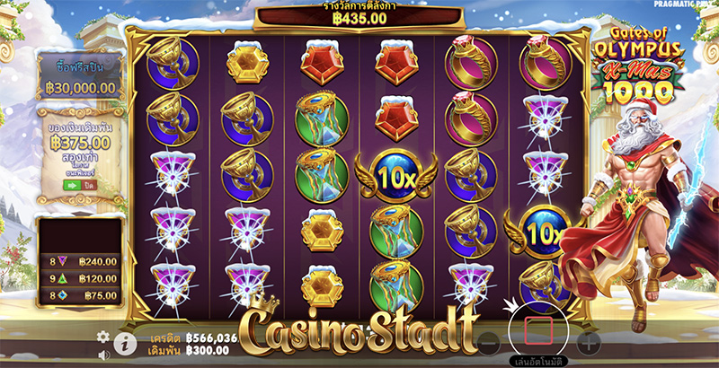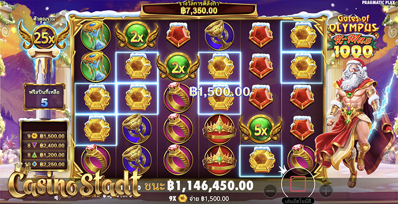 ทดลองเล่น Gates of Olympus Xmas 1000 ประตูแห่งโอลิมปัส คริสต์มาส 1000 กันได้แล้วที่นี่! หรือหากชื่นชอบเกมธีมกรีกโบราณ Casino Stadt ก็มีเกมอื่นๆมาแนะนำ สามารถคลิกเข้าไปทดลองเล่นกันฟรีๆได้เลย!