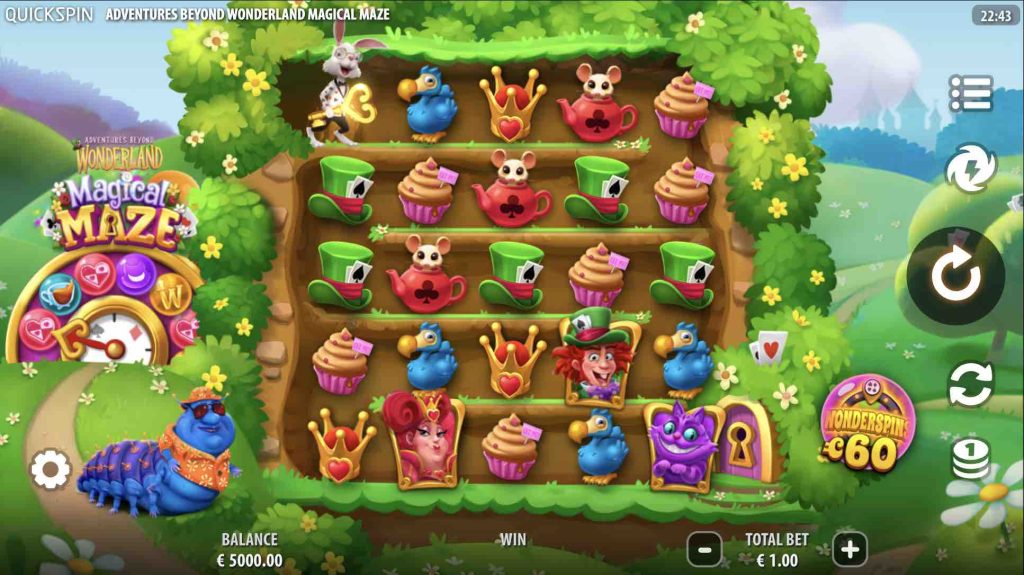 Quickspin has come out with Adventures Beyond Wonderland Magical Maze slot which ushers players into the famed Wonderland from Carroll’s stories. Grab your chance to win the $5,000 jackpot as you discover the whimsical landscape while landing power glyphs, Wilds, and character modifiers!