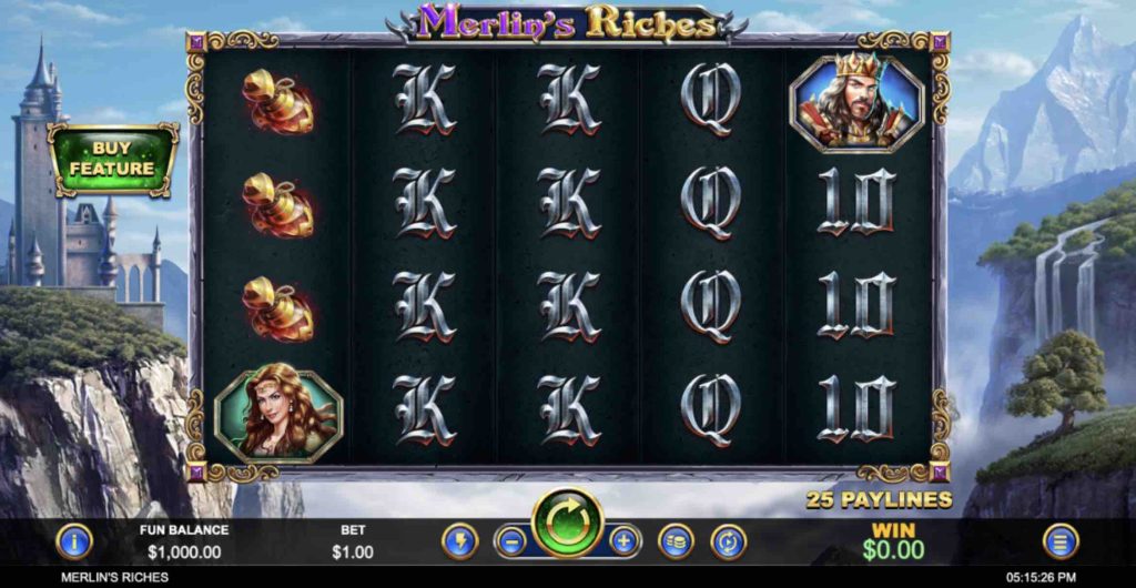 Released in June 2022, Merlin’s Riches is a highly volatile slot set in mythical Brittania amidst towering cliffs. Besides featuring a 5×4 grid, the game has 25 paylines. Players can bet between $0.25 and $25. The title has a maximum cash jackpot of $1,000 and an RTP of 95%.