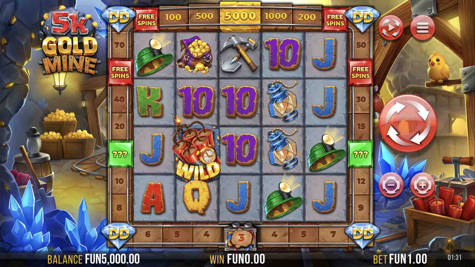 5k Gold Mine Dream Drop has 4 lucrative extras that make the game more fun. In the Gold Rush Bonus, landing the corresponding Scatters yield cash bonuses, jackpots, free spins and mystery prizes up to 5,000x. The Free Spins extra grants 10 spins along with cash prizes and gold rush Scatters.