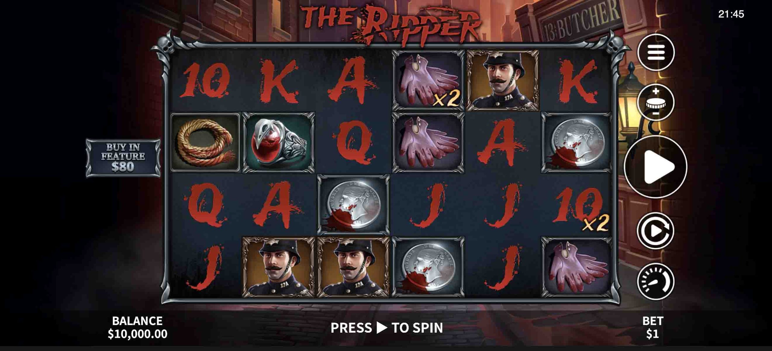 The Ripper is a crime-themed slot by Skywind that takes players to the site of a ghastly crime committed by the titular antagonist. Solve the case to win the $1,000 max cash jackpot, and trigger all the extras to make the most of the 4,096 ways to win!