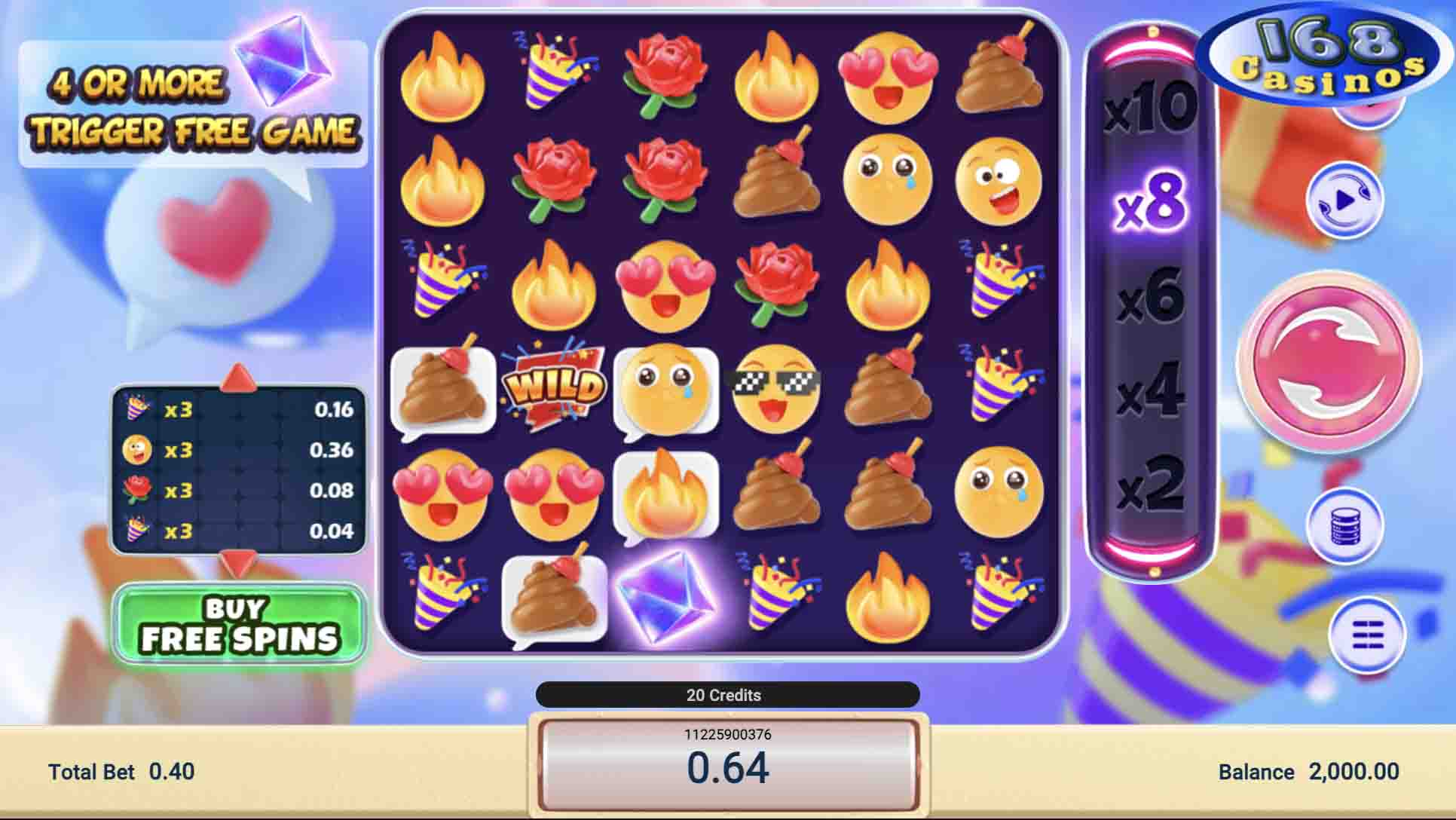Landing a win with chatbox icons transforms them into Wilds. The Free Spins round delivers up to 18 gratis spins with a maximum multiplier of 100x. Use the Buy Free Spins option to purchase your way into the bonus round.