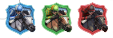 ในรอบฟรีสปิน จะปรากฏนักควบม้าสีน้ำเงิน สีเขียว และสีแดง บนสนามม้าที่ด้านล่างของตาราง พร้อมตัวคูณ ×3