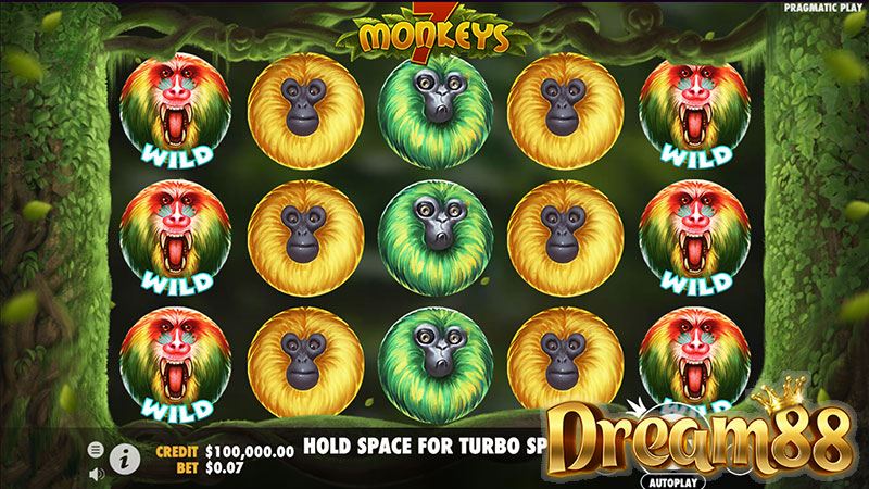 เอาเป็นว่าตลอดการเล่นเกมนี้เราจะได้พบกับสัญลักษณ์เป็นลิงหลากสี มีจำนวนเพย์ไลน์เพียงแค่ 7 ไลน์เท่านั้น เล่นโดยใช้ 5 รีล แต่ละรีลมี 3 แถวค่ะ