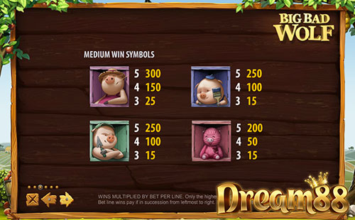 เกม Big Bad Wolf Slot นี้โดยส่วนพื้นฐานแล้วก็เป็นสล็อตแบบ 5 รีล มี 20 เพย์ไลน์ให้ได้เลือก และเนื่องจากว่ามีธีมแนวเด็กๆ ภาพลักษณ์ของเกมก็เลยดูสดใส ยอดเยี่ยม เต็มเปี่ยมไปด้วยกราฟฟิกส์ 3 มิติแบบ high resolution แล้วตัวกงล้อเองก็ตกแต่งด้วยกราฟฟิกส์ที่ออกแบบมาเป็นเหมือนตัวกระท่อม ซึ่งก็เข้ากับธีมหลักของเกมมาก