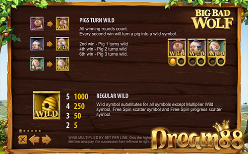 และถ้าเกิดว่าในรอบนี้ได้พระจันทร์ทั้งหมด 3 อันอีก หมาป่าก็จะเป่าบ้านอิฐทิ้งไป พร้อมกับเราที่ได้ฟรีสปินเพิ่มขึ้นอีก 2 รอบ รวมไปถึงตัวคูณที่ช่วยเพิ่มเงินรางวัลให้อีกถึง 2 เท่า