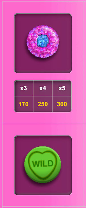สัญลักษณ์ Wild เป็นลูกอมสีเขียวเขียนว่า Wild แทนได้ทุกสัญลักษณ์ยกเว้น Scatter และ Bonus เท่านั้น