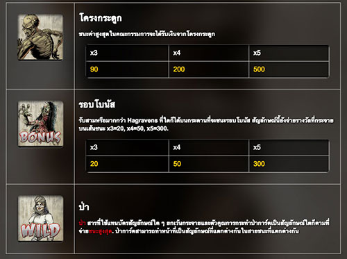 เริ่มจาก สัญลักษณ์โบนัส ก่อนนะครับ สัญลักษณ์โบนัส ในเกมนี้ค่อนข้างพิเศษทีเดียวถ้าเราได้สัญลักษณ์โบนัส 3, 4 หรือ 5 อันในแถวไหนก็ได้นะครับ เท่ากับว่าเกมโบนัสจะทำงาน หน้าจอหลักของเราก็จะขึ้นคำว่า Scatter และเปลี่ยนเป็น ซอมบี้เรียงแถวจากซ้ายไปขวา ให้เราได้ยิงครับ เมื่อเรายิงซอมบี้แต่ละตัวก็จะได้เงินรางวัลที่แตกต่างกันไป ซึ่งจะมีซอมบี้บางตัวที่เรายิงแล้วจะได้เพิ่มกระสุน หมายถึงจำนวนครั้งที่เรายิงได้จะเพิ่มขึ้นครับ