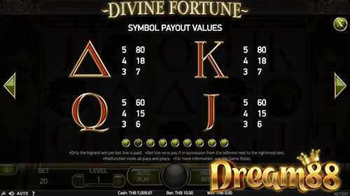 Divine Fortune Slot เกมสล็อตออนไลน์แบบมีแจ็กพ็อตเงินรางวัลสะสมต่อเนื่อง พัฒนาขึ้นมาโดย Net Entertainment หรือที่เรารู้จักกันในนาม NetEnt ตัวเกมจะเป็นสล็อตออนไลน์ แบบ 5 รีล 3 แถว และมีจำนวนแถวในการจ่ายอยู่ที่ 20 แถว ไม่สามารถตั้งค่าเปลี่ยนได้ค่ะ