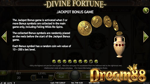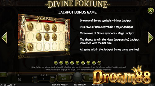 แจ็กพ็อตโบนัสในเกม Divine Fortune Slot