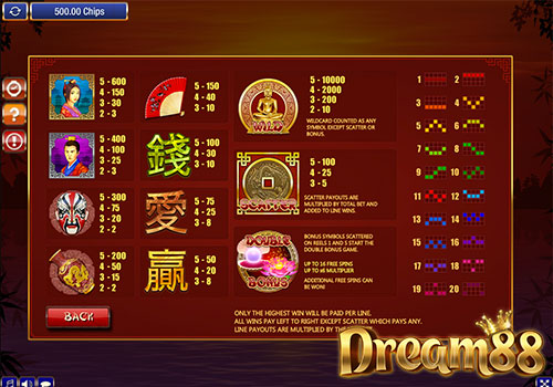 ในเกมสล็อตเกมนี้ ก็เหมือนๆกับเกมสล็อตร่วมสมัยเกมอื่นๆ ตรงที่ว่าเราจะได้ add-ons มากมายที่ช่วยให้เราได้เงินรางวัลจากการชนะเกมได้ง่ายขึ้น และเร็วขึ้น อย่างสัญลักษณ์ Wild ของเกมที่เป็นรูปปั้นทอง แล้วก็ Scatter ที่เป็นเหรียญของจีน รวมทั้ง สัญลักษณ์โบนัส ที่เป็น รูปไข่มุกและดอกบัว ทั้งสามอย่างนี้เป็นตัวช่วยของเราทั้งนั้นครับ