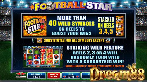 Football Star Slot เป็นเกมสล็อต 5 รีล มีพื้นฐานมาจากกีฬาที่มีผู้คนคลั่งไคล้กันมากที่สุดในโลก “ฟุตบอล” ครับ นี่ก็เป็นอีกหนึ่ง product จากค่าย Microgaming ดังนั้นก็เลยเป็นเกมที่สามารถนำเสนอความตื่นเต้น และความกระตือรือร้นของเหล่าผู้เล่นฟุตบอลทั้งหลายกับการลงเล่นในสนาม