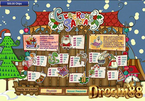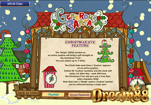 ถึงแม้ใครจะเป็นมือใหม่สำหรับเกมสล็อตก็ตาม เชื่อได้ว่าคงจะรู้สึกดีไม่น้อยกับการเล่นเกม Generous Santa Slot เพราะมีตัวช่วยมากมาย ไม่ว่าจะเป็นสัญลักษณ์ Wild หรือ Scatter พร้อมด้วย ฟรีสปิน ที่จะช่วยให้เราชนะเกมได้ง่ายขึ้น รวดเร็วยิ่งขึ้น ความเป็นจริงแล้วถ้าเราสามารถได้ในทุกสปิน ก็จะสามารถชนะเงินรางวัลได้มากที่สุดถึง 200,000 coins เลยนะครับ แต่ต้องเล่นในวันที่โชคดีที่สุดเท่านั้นนะครับถึงจะได้สูงขนาดนี้
