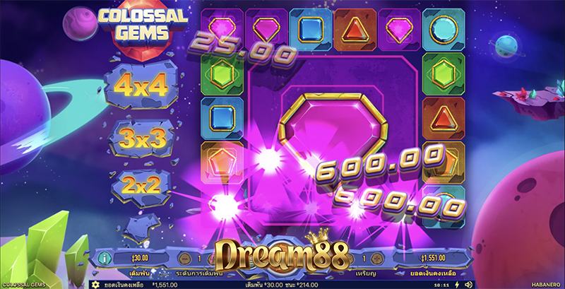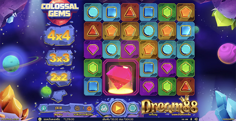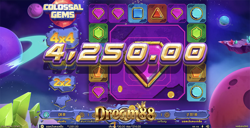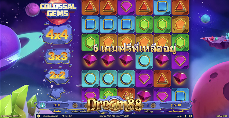 Colossal Gems มาในตารางสล็อตขนาด 6 x 5 กับเพลย์ไลน์ 30 เส้น