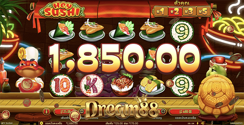 Hey Sushi เฮ้ซูชิ มีอัตราการจ่ายเงินคืนแก่ผู้เล่น หรือ ค่า RTP อยู่ที่ 96.75% และ ความผันผวนสูง