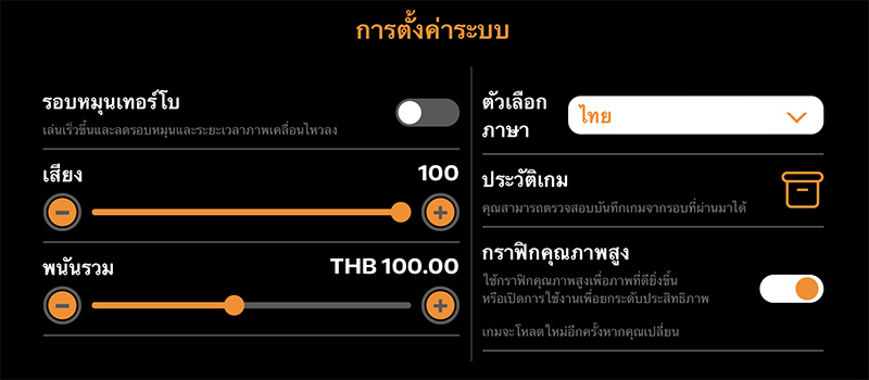 รวมทั้งได้รับการแปลเป็นหลายภาษา รวมถึงภาษาไทย ผู้ใช้สามารถสลับภาษาไปมาระหว่างเกมได้ตลอดเวลาในเมนูการตั้งค่า รวมถึงการตั้งค่าอื่นๆ เช่น การสปินแบบเทอร์โบ ระดับเสียง รวมไปถึงคุณภาพกราฟิก HD หรือ SD ซึ่งรับประกันได้ว่าการเชื่อมต่ออินเทอร์เน็ตที่ช้าจะไม่ส่งผลกระทบต่อการเล่นเกม รวมทั้งสามารถดูผลลัพธ์จากการสปินครั้งก่อนๆได้ในประวัติเกมกันเลยค่ะ
