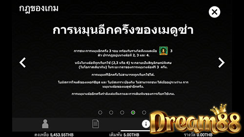 หลังจากปรับเงินเดิมพันเรียบร้อย กดปุ่มหมุนสีทองเพื่อเริ่มเกมได้ทันที ใครที่ชอบความรวดเร็วสามารถกดที่ปุ่มสายฟ้าเพื่อเปลี่ยนให้เป็นโหมดเทอร์โบได้ค่ะ