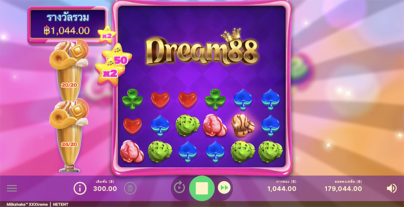 MilkShake XXXtreme มิลค์เชค เอ็กซ์เอ็กซ์เอ็กซ์ตรีม จะพาคุณไปดื่มด่ำกับเครื่องดื่มแสนหวานในดินแดนแห่งมิลค์เชค เพียงช่วยเติมมิลค์เชคให้เต็มแก้วก็จะได้รับท้อปปิ้งแสนอร่อยและตัวคูณไปเลยทันที! เกมสล็อตน้องใหม่ปี 2023 จากสตูดิโอเกมชื่อดัง NetEnt ที่เน้นสีสันสดใส กับสัญลักษณ์ต่างๆที่ดูเหมือนเยลลี่และไอศกรีมของจริง นอกจากนี้ยังมี ฟีเจอร์มิลค์เชคสีรุ้ง และ ฟีเจอร์บูสเตอร์ตัวคูณ ที่จะช่วยทำให้คุณได้รับเงินรางวัลเพิ่มขึ้นไปอีกขั้น แต่ฟีเจอร์ต่างๆจะมีวิธีใช้งานอย่างไรนั้นไปดูกันเลยค่ะ
