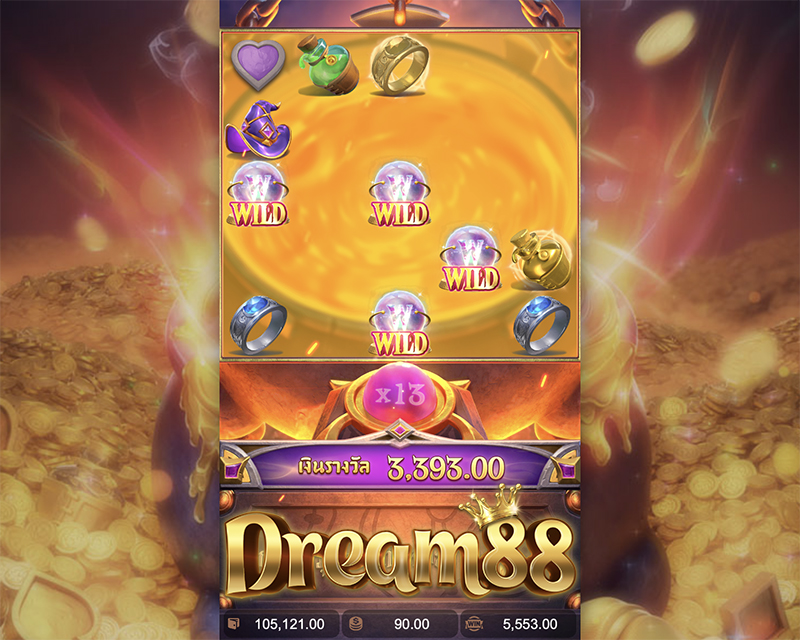 สัญลักษณ์ Wild ใช้แทนสัญลักษณ์อื่นได้ทั้งหมดยกเว้นสัญลักษณ์ Scatter