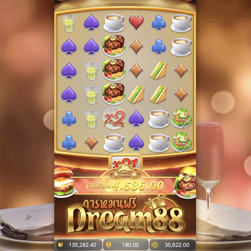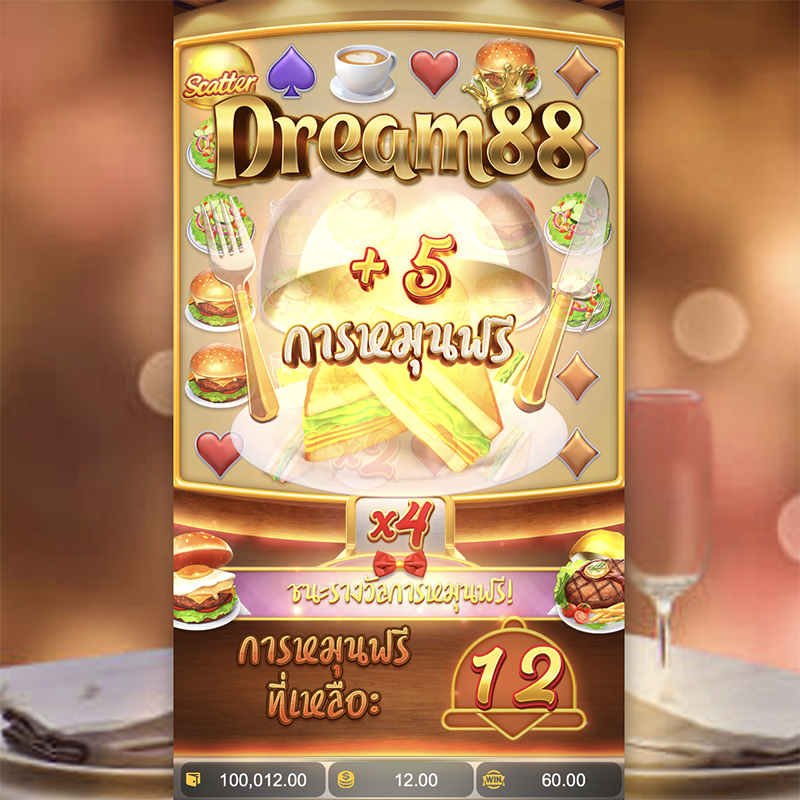 เกมสล็อต Diner Delights ร้านอาหารเลิศรส จากค่าย PG มีทั้งสัญลักษณ์ตัวคูณที่สามารถสะสมได้ในรอบโบนัสฟรีสปิน ที่อาจทำให้คุณได้รับเงินรางวัลก้อนใหญ่สูงสุดถึง x5,000 เท่าของเงินเดิมพัน! คลิกเพื่อ เล่นเกมสล็อตฟรี หรือเดิมพันจริงกันได้เลยที่เว็บไซต์คาสิโนออนไลน์ชั้นนำ ที่ dream88 คัดสรรมาให้คุณ นอกจากนี้เรายังมีเกมแจ็กพอต เกมยิงปลา เกมคาสิโนสด และเกมชั้นนำอื่นๆอีกเพียบให้คุณได้ลอง
