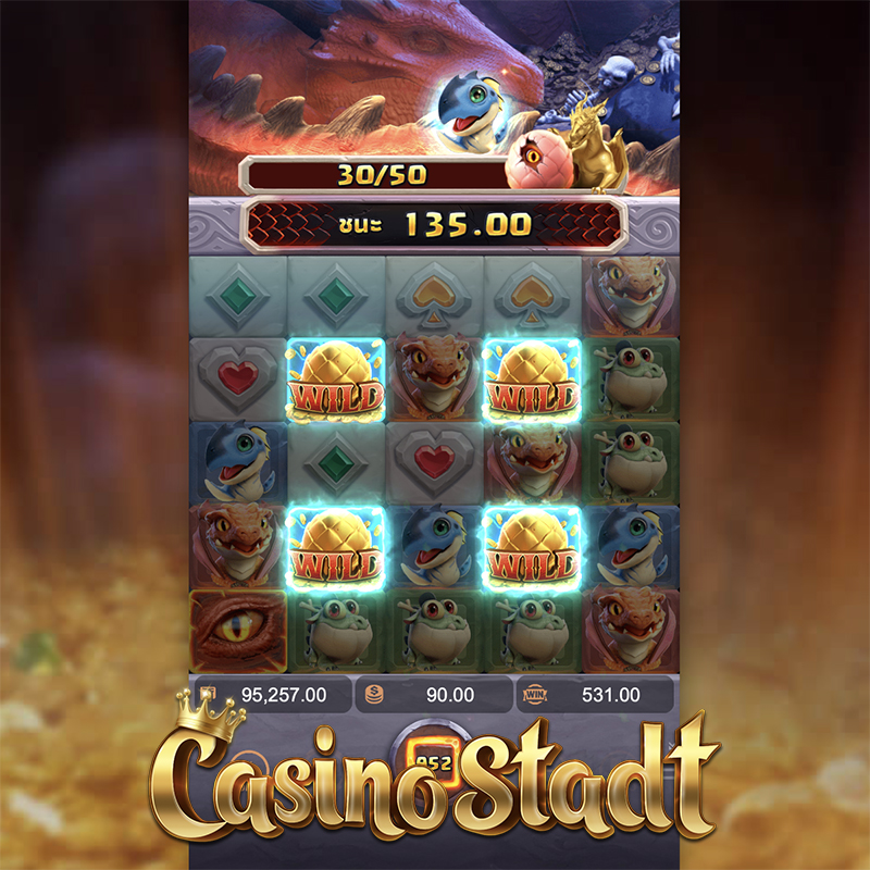 คุณจะปลุกสิ่งมีชีวิตในตำนานให้มีชีวิตอีกครั้งได้หรือไม่!? ในภารกิจฟักไข่แห่งมังกรสุดระทึก! เกม Dragon Hatch ดราก้อนแฮตช์ จากค่าย PG มาในตารางสล็อตขนาด 5 × 5 ที่มีการจ่ายรางวัลเป็นแบบคลัสเตอร์เพียงได้สัญลักษณ์เดียวกันเชื่อมต่อกันอย่างน้อย 4 ตัวเท่านั้น! ระเบิดสัญลักษณ์ให้ครบตามจำนวนเพื่อเปิดใช้งานฟีเจอร์มังกรดิน มังกรน้ำ มังกรไฟ ไปจนระดับสูงสุดฟีเจอร์ราชินีมังกร! ห้ามพลาดกับภารกิจลุ้นเงินรางวัลสูงสุด ×15,000 เท่าของเงินเดิมพัน!