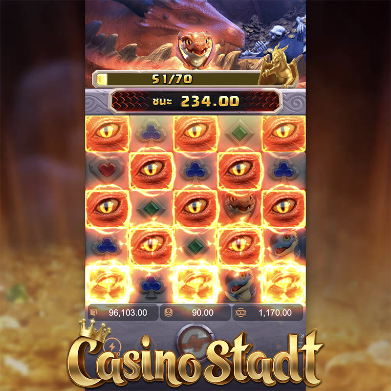 มิเตอร์รวบรวมสัญลักษณ์ที่ชนะคลัสเตอร์ และฟีเจอร์มังกร