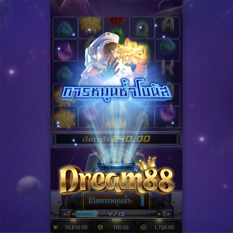 ค่าย PG เกมสล็อต Galactic Gems ที่นอกจากจะเต็มไปด้วยความระยิบระยับแวววาวแล้ว ยังอัดแน่นไปด้วยฟีเจอร์หมุนซ้ำที่จะช่วยให้คุณมีโอกาสได้รับเงินรางวัลก้อนใหญ่ คลิกเพื่อ เล่นเกมสล็อตฟรี หรือเดิมพันจริงกันได้เลยที่เว็บไซต์คาสิโนออนไลน์ชั้นนำที่ dream88 คัดสรรมาให้คุณ นอกจากนี้ยังมีเกมแจ็กพอต เกมยิงปลา เกมคาสิโนสด และเกมชั้นนำอื่นๆอีกเพียบให้คุณได้ลอง