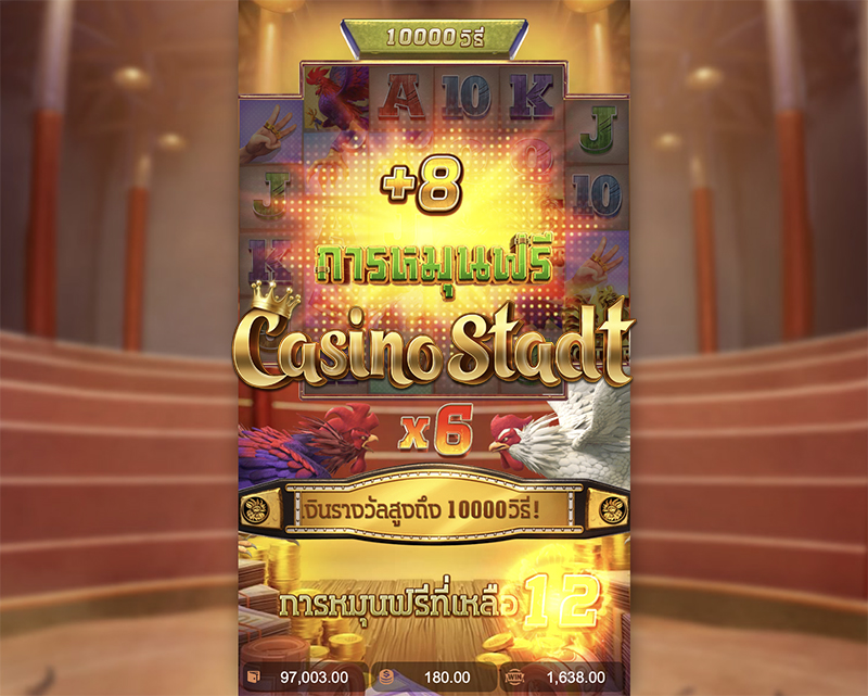 คุณก็มีโอกาสร่ำรวยจากการชนไก่ออนไลน์ได้เช่นกัน! ผ่านเกมสล็อต Rooster Rumble ไก่แจ้คึกคะนอง จากค่าย PG สัญลักษณ์ Wild เหนียวหนึบที่สามารถใช้ได้ถึง 5 ครั้งในรอบฟรีสปิน และตัวคูณที่เพิ่มขึ้นเรื่อยๆผ่านฟีเจอร์ร่วงหล่น ผู้โชคดีที่ได้รับเงินรางวัล ×20,000 เท่าของเงินเดิมพันอาจเป็นคุณ!