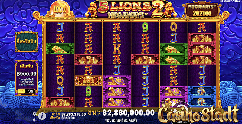 กลับมาอีกครั้งกับเกมธีมสิงโตสุดฮิตจากค่าย Pragmatic Play ! ในเกมสล็อตเมกาเวย์ 5 Lions Megaways™ 2 5 ไลออนส์ เมกาเวย์ 2 ที่มีจำนวนเพย์ไลน์สูงสุดถึง 262,144 เส้น! พบกับสัญลักษณ์ทองคำที่จะนำโชคดีมาให้คุณ ไม่ว่าจะเป็น เต่า กบ นกฟินิกซ์ ฯลฯ ความพิเศษของเกมนี้อยู่ที่รอบฟรีสปิน และซูเปอร์ฟรีสปิน ที่ผู้เล่นสามารถสะสมเหรียญทองคำเพื่ออัปเกรดเลเวลตัวคูณไวลด์สูงสุดได้ถึง ×100!