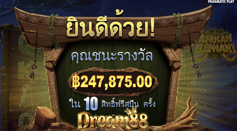 ในเกม African Elephant ผู้โชคดีสามารถชนะเดิมพันได้สูงสุดถึง 15,000x เท่า นั่นแปลว่า เพียงลงเดิมพันแค่ 10 บาท อาจจะได้กลับบ้านไปถึง 150,000 บาท ก็เป็นได้ ถ้าพร้อมแล้ว เข้าไปผจญภัยในทุ่งหญ้าสะวันนาพร้อมสัตว์ป่าน้อยใหญ่กันเลย ที่เว็บไซต์คาสิโนออนไลน์ชั้นนำของประเทศไทย ที่ dream88 คัดสรรมาให้คุณ และยังมีเกมฮิตอื่นๆอีกเพียบให้คุณได้ร่วมสนุก ไม่ว่าจะเป็นเกมแจ็กพอต เกมยิงปลา เกมคาสิโนสด