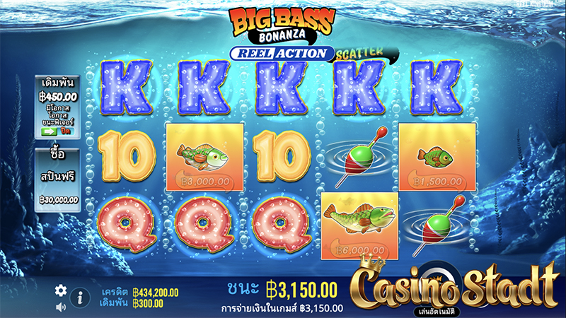 Big Bass Bonanza – Reel Action บิ๊กบาส โบนันซ่า รีลแอคชั่น มาในตารางสล็อตขนาด 5 × 3 และเพย์ไลน์ 10 เส้น