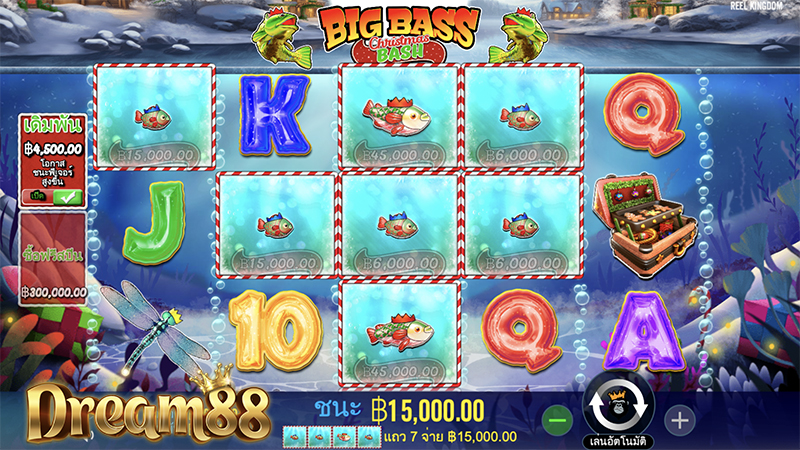 Big Bass Christmas Bash™ บิ๊กบาส คริสต์มาสแบช มาในตารางสล็อตขนาด 5 x 3 และเพย์ไลน์ 10 เส้น